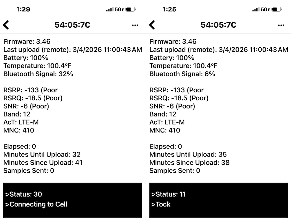 On the left side, you can see that the hub is attempting to connect to the cellular network (either during boot or after a disconnection).