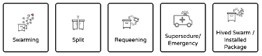 Vi har gått gjennom "Svermen" og "Requeening" syklusane detaljert. Skifte/akuttrequeening og Splitt syklusane er svært liknande Requeening-syklusen med færre alternativ. Dette forenklar dataregistreringa.