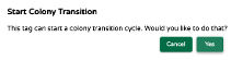 Å velje ein av overgangssyklusmerkelappane viser ein popup som spør om du vil bekrefte at dette er det du vil gjere.